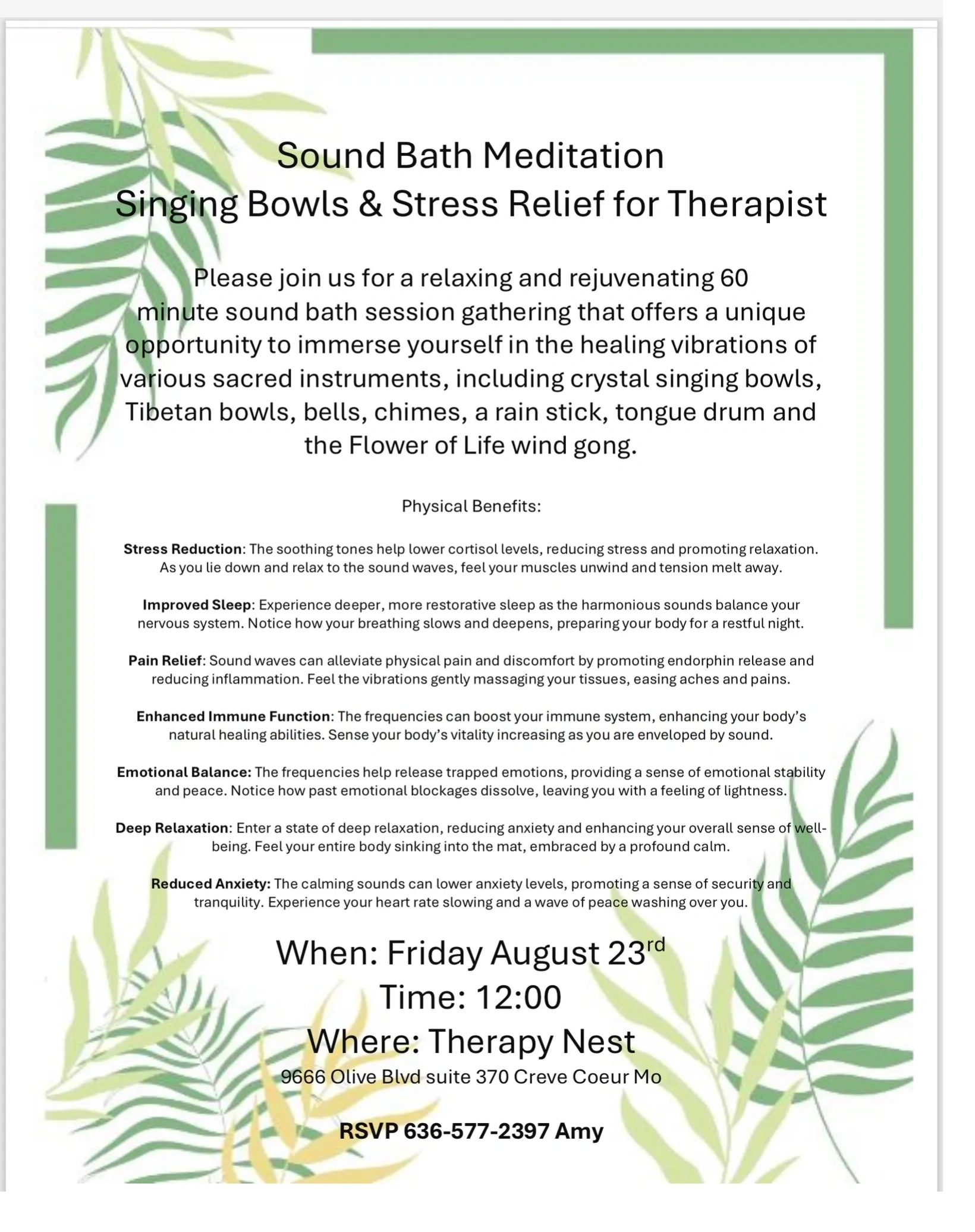 Where: Therapy Nest 9666 Olive Blvd Suite 370 Creve Coeur